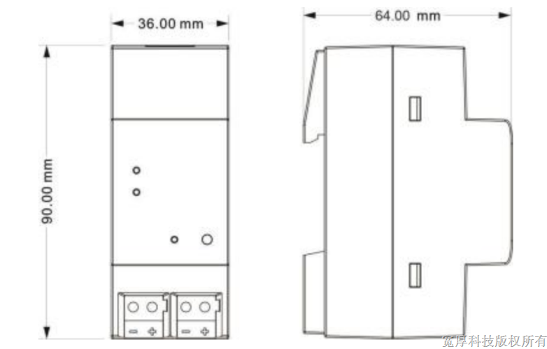 设 计 模块化安装设备,安装在 35mm 导轨上 |